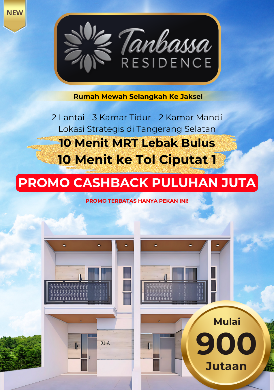 Tanbassa Residence merupakan perumahan 2 lantai 3 kamar tidur dekat Pintu Tol Ciputat 1 dan MRT Lebak Bulus yang terletak di Ciputat, Tangerang Selatan. Cluster Eksklusif dengan desain modern minimalis, keamanan terjamin dan terbukti bebas banjir.